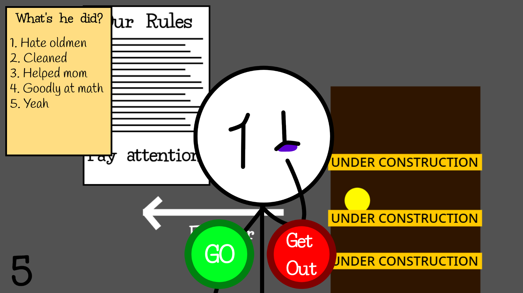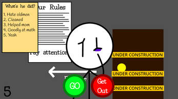 You are the final judge at the elevator doors. In this game, you take on the role of a strict (or maybe not-so-strict) controller. Various stickmen will aproach you, each carrying a history of their past actions. Some saved kittens, while others... well, you'll see for yourself in their work list.
